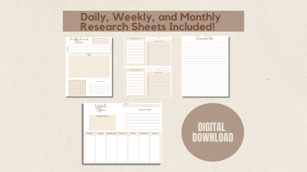 - Daily Planner Sheet: Break down your daily tasks to ensure productivity, whether writing, conducting research, or attending meetings.