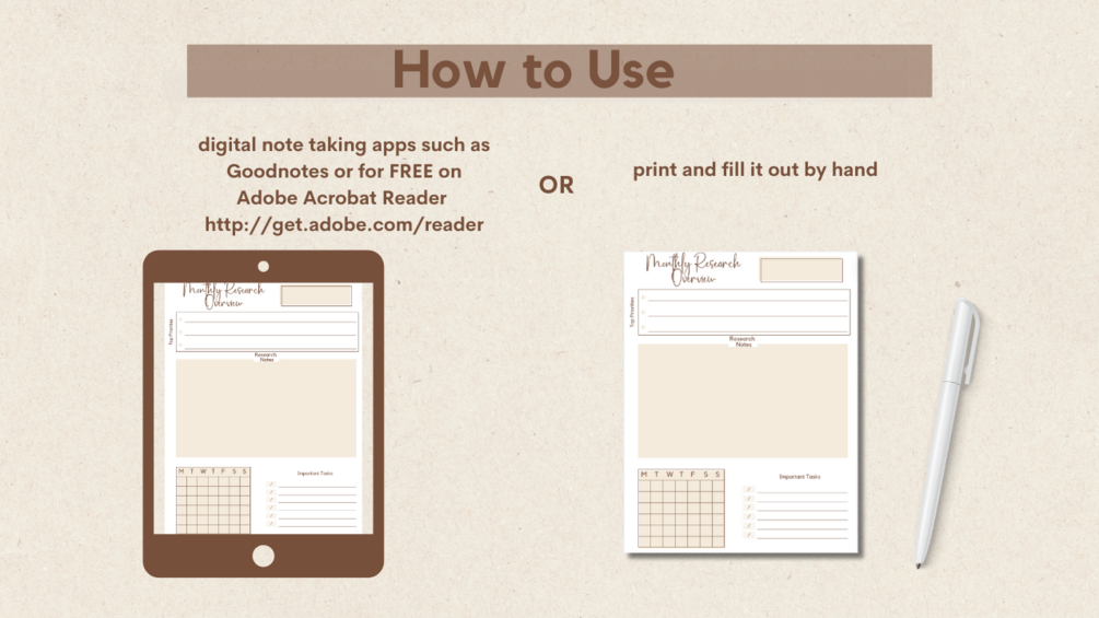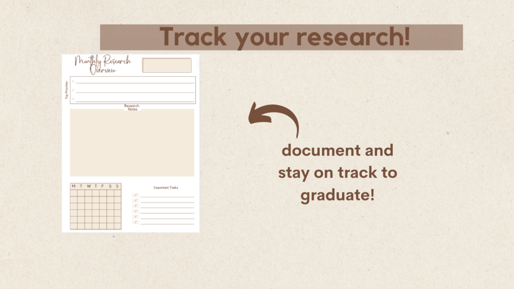 - Two Monthly Planner Sheets: Plan out major milestones, dissertation deadlines, and research project timelines over a more extended period.